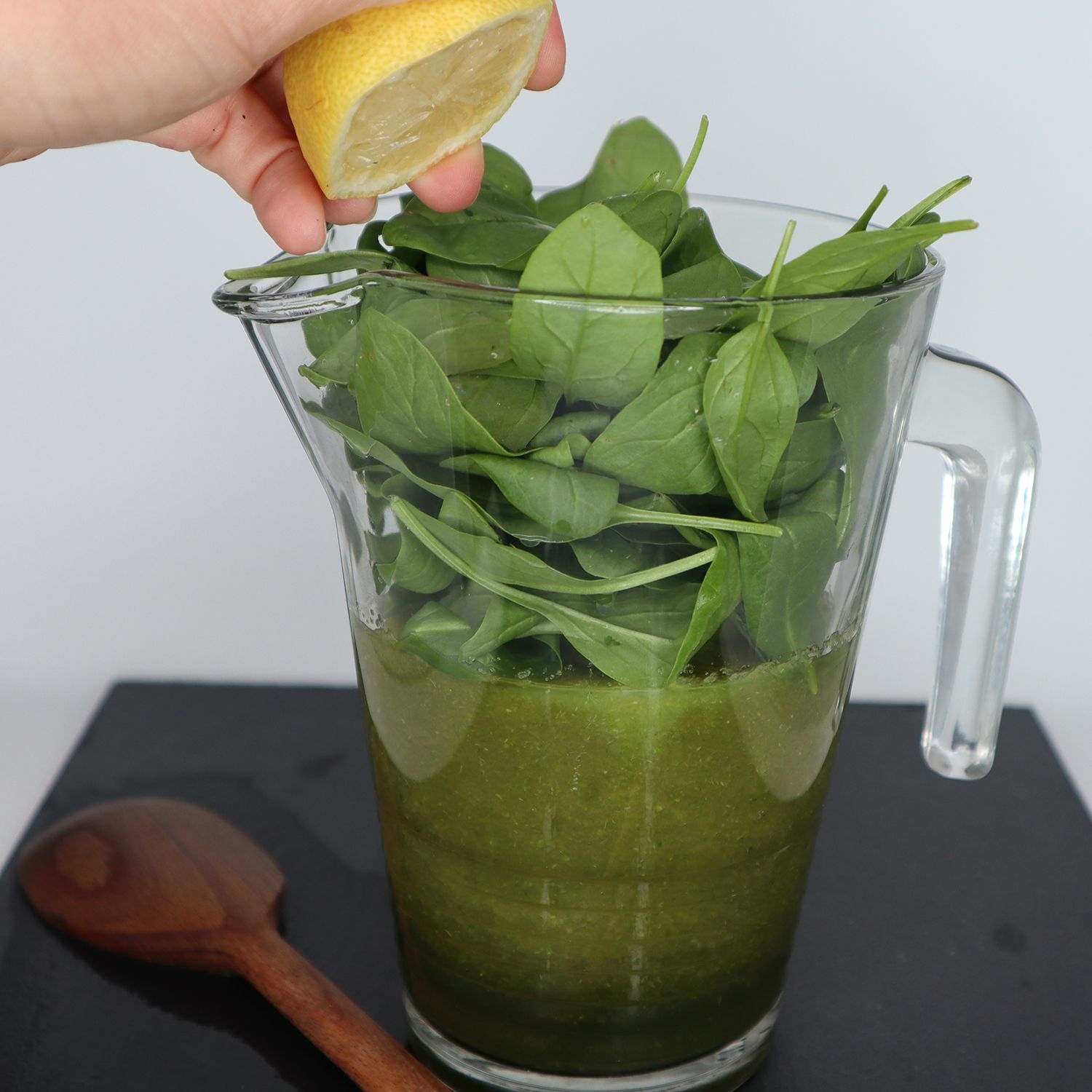 Grünkohl, Avocado, Basilikum Limette, Wasser